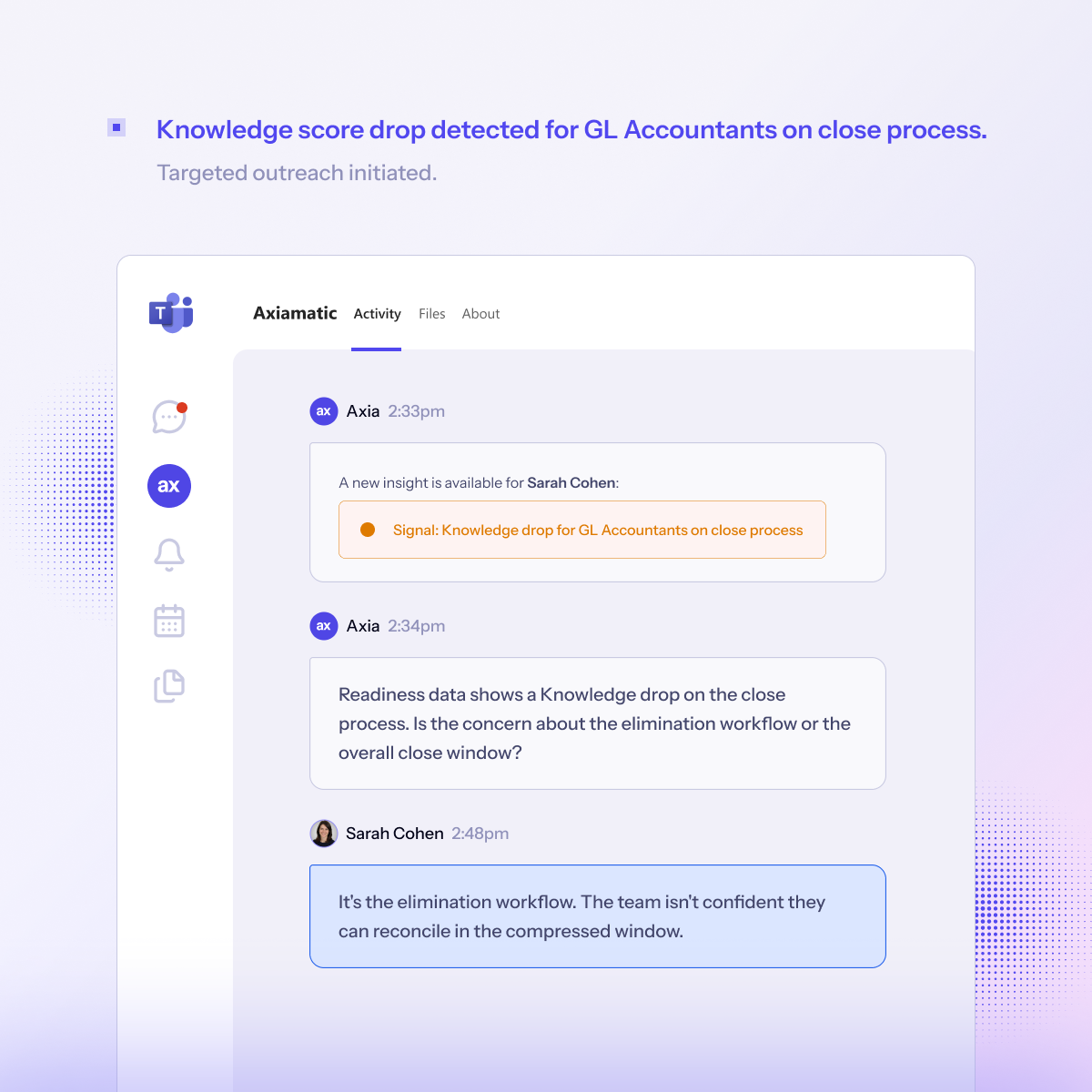 Resistancelivesinhesitation,partialalignment,andunspokenconcernthatnevermakesitintoreports.Axiamaticsurfacesthesebehavioralsignalsincontext,soreadinessgapsareaddressedproactively.